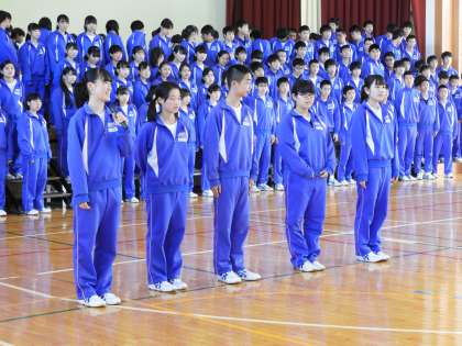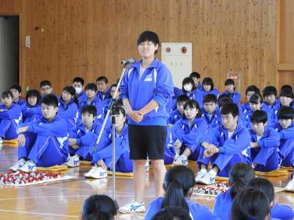 3年生からのお礼の言葉と下級生へのメッセージをいただきました。そして、3年生全員による歌のプレゼントです。