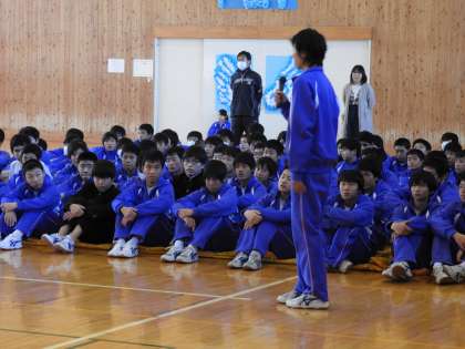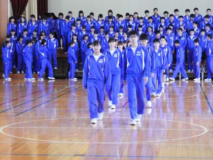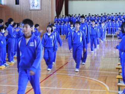 閉会の言葉の後、いよいよ3年生の退場です。原中の3年生を送る会は、毎年、このパターンですが、歌に心がこもっていて、余韻の残る会となりました。