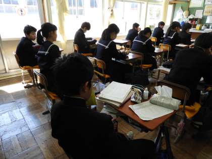授業風景(2年D組 読解)です。言語読解で、進路学習をかねて、発表会を行ったそうです。