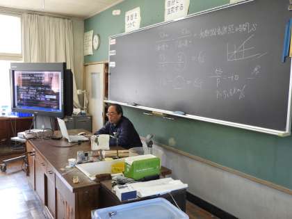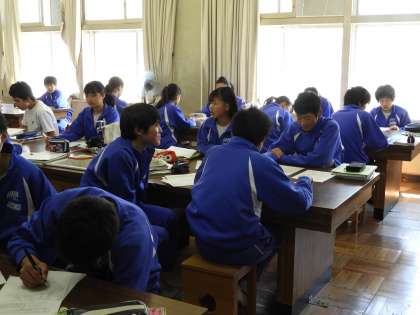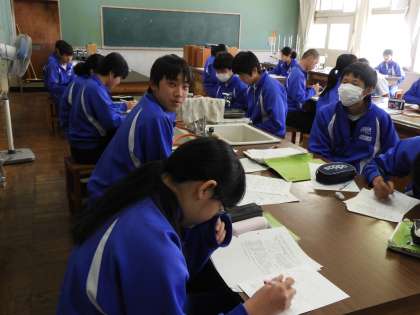 授業風景(2年C組 理科)です。理科室で授業をやっていました。やはりこちらも復習の時間でした。