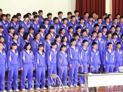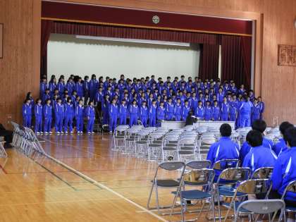 続いて、3年生から大地讃頌の歌をプレゼントしました。先生も笑顔で聴いてくださいました。後で、すばらしい歌声でしたと先生からお褒めの言葉をいただきました。
