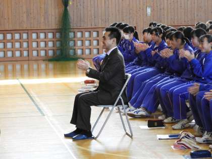 先生へのお礼の言葉を生徒会長が代表してのべました。自分の言葉で、講演内容を織り交ぜての内容に、大胡田先生が感心されていました。苦労に苦労を重ねてきた先生ですが、生きることを楽しんでいる姿に勇気をいただきました。私たちも頑張らなくてはいけないという気持ちになる講演会でした。大胡田先生、ありがとうございました。