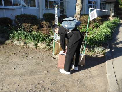 富士山がとてもきれいです。今年度、最後の古紙回収に協力してくれる生徒がいました。