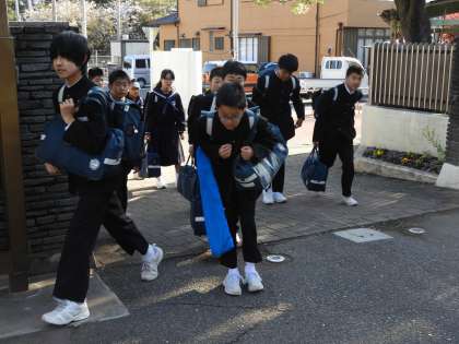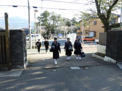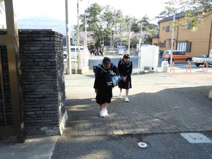 あいさつ運動を始めました。丁寧なあいさつを1年生に伝授し始めました。