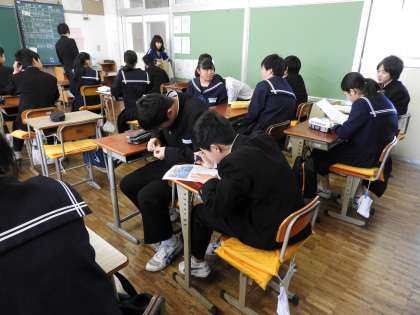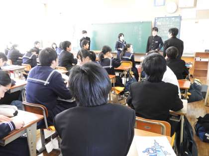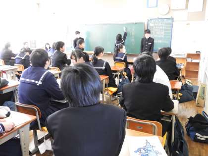 授業風景(3年A組 学活)です。3Aは学級目標を決めるために話し合いをしている最中でした。
