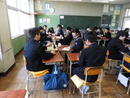 こちらも学級目標を決めていましたが、班で意見を出し合っているところでした。