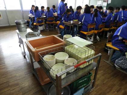 給食の様子(2年)です。2年生もしっかり食べていました。日々、支度・片付けが早くなっているようです。