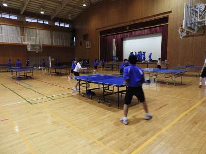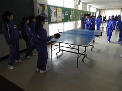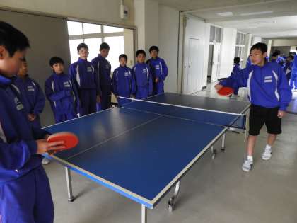 先週金曜日の1年生部活働見学です。卓球部では、上級生と試合をしてもらっていました。