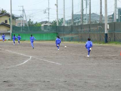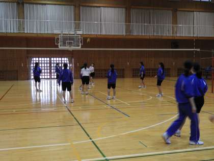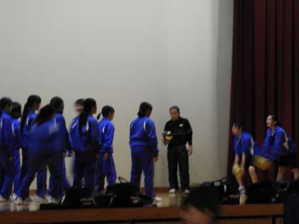 バレー部はステージで、1年生が岡本さんから指導を受けていました。ちなみに岡本さんは地元にお住まいの外部指導員です。外では陸上部がダッシュをしていました。
