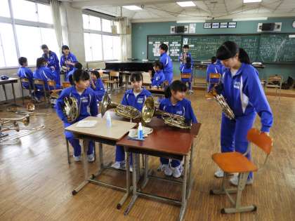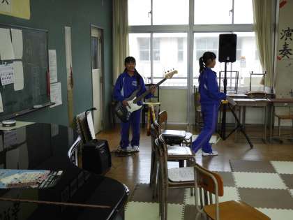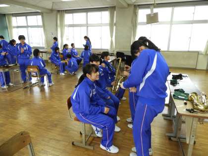 吹奏楽部では、学期を触らせてもらっていました。ベースを弾ける1年生もいるようです。