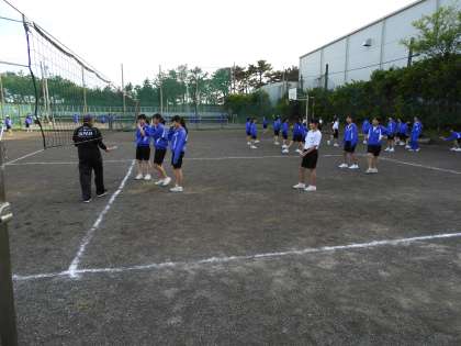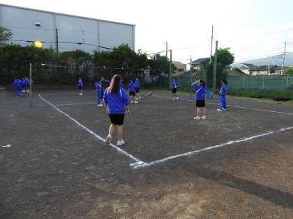 バレーボール部には、1年生が結構来ていました。2年生も多いので、レギュラー争いが大変です。3年生は、公式戦勝利が目前、頑張って!