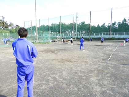 男子テニス部にも。1年生がたくさん来ていました。有望な新人がいるようです。