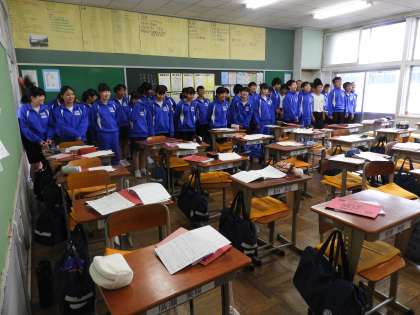 帰りの会(2年C組)です。先に歌っていたのが2Cでした。楽しそうですが、しめやかさを出せるように歌ってほしいと伝えました。本番までに歌い込んでいくと良くなるでしょう。