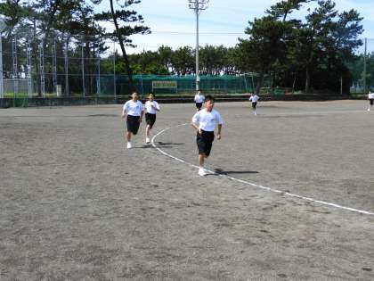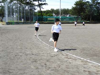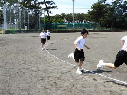 授業風景(1年B組 体育)です。600m走が始まりました。