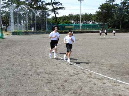 通常は1000m走を原中ではやっていますが、まだ慣れない1年生ということもあり、600mから始めたそうです。