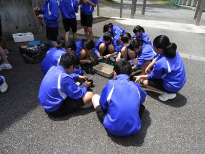 授業風景(2年C組 技術)です。昨日に続いて、「生物の育成」を、2Cで実施しました。FBCからいただいた花の種を植えます。今日は、サルビアの白を育苗します。生徒たちは楽しそうにポットの土入れから始めました。