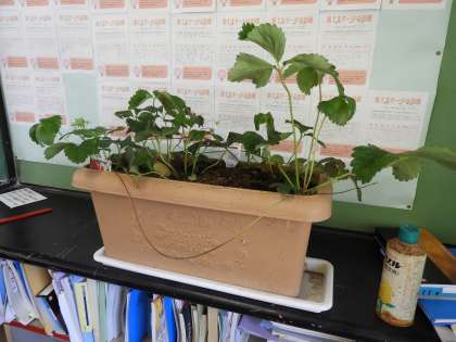 2年B組、A組も実がついていました。1年A組も塩害のためか、葉っぱの先が枯れていました。水を多めにあげた方が良さそうです。