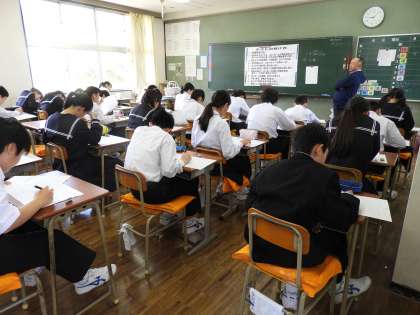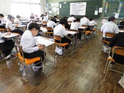 1年生にとっては初めての定期テスト。第1ステージテストが始まりました!1年A、B、C組を回ってきました。真剣に取り組んでいました。