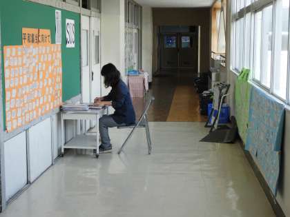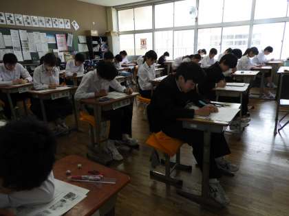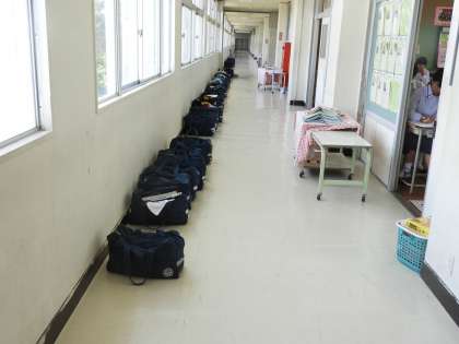 3年生の教室へ回りました。3年A組から行ってきましたが、鞄がそろっているだけでなく、監督以外の先生も廊下でノート点検をされていました。