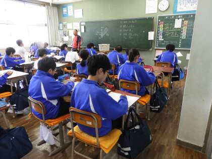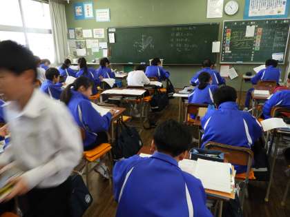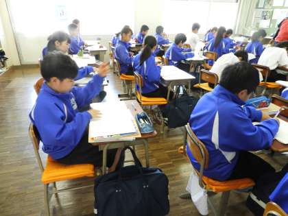 授業風景(1年C組 理科)です。テスト返しが終わったところです。解説を聞き、わからなかったところを克服することが大事です。