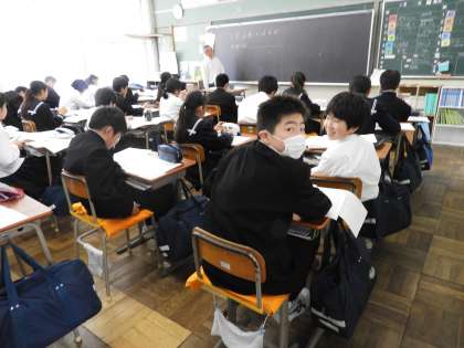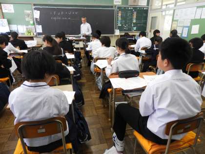 授業風景(1年E組 英語)です。1年生、初めての定期テスト、どうだったでしょうか