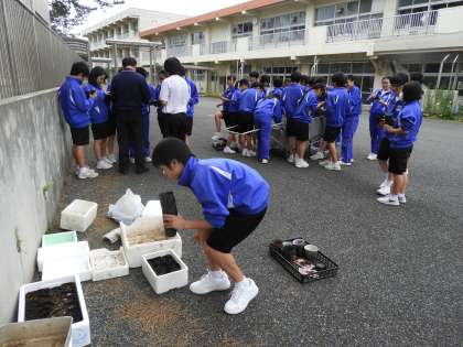 一人20ポット作ってもらったので、少し時間がかかりましたが、何とかできあがりました。種まきはスタートです。水まきを継続できるかが勝負です。
