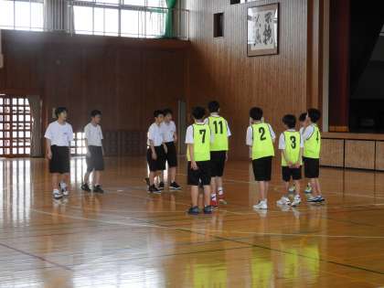 1,2年生による部活動(男子バスケットボール部)です。こちらも3年生がいなくても、しっかりと練習していました。紅白戦が始まりました。