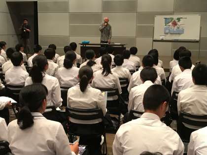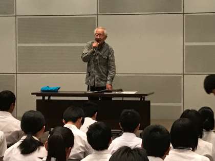 語り部の大越さんから、お話を伺います。大越さんは、5歳の時に被爆されています。現在、広島県原爆被害者団体協議会の事務局長をされています。戦争の歴史からお話をいただきました。