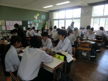 本日(5/22)、1時間目の授業風景(2年A組 道徳)です。教育実習生の授業でした。「心に寄りそう」という教材をもとに、本校のグランドデザインにもある「思いやり・感謝」について考えていました。