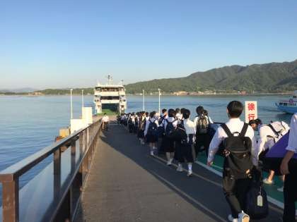 フェリーに乗って、宮島へ向かいます。