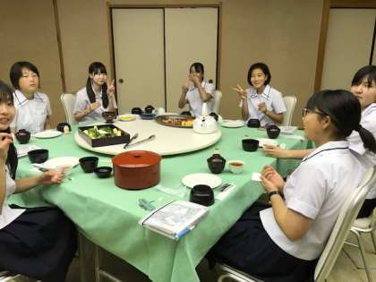 厳島神社の美しい景色に心も癒され、これから朝ご飯です。みんなで盛り付けして、いただきました。