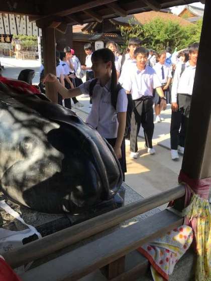 3年CD組で、本殿でのご祈祷をしてきました。その後、牛のお参りをしてきました。