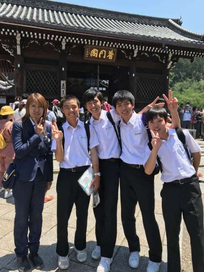 原中生、3つ目の班を発見!男子の班がやってきました。運転手さんとも撮影しました!