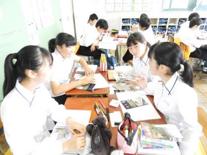 休み時間のチャイムが鳴りました。休憩中も修学旅行の思い出に花が咲いていました。