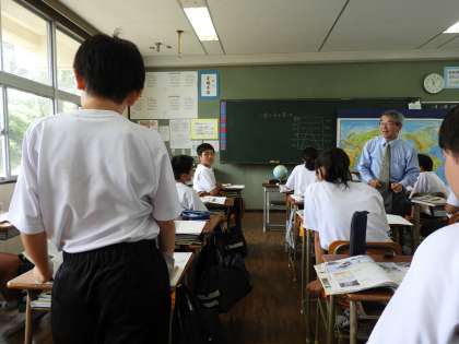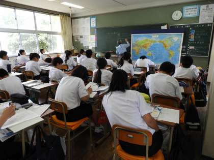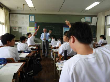 初任者研修で、出張研修している天野先生の後補充の授業を大庭先生にお願いしました。中学校時代に教わった先生の授業を参観させてもらいました。(1年A組 社会)です。懐かしかったです。