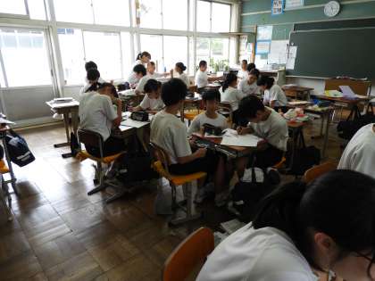 授業風景(2年C組 国語) です。短歌の学習をして、鑑賞文を作成していました。