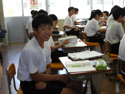 授業風景(3年A組 英語)です。ALTのマユミ先生の生の英語を聞くことができ、今の子どもたちは幸せだなと思いました。