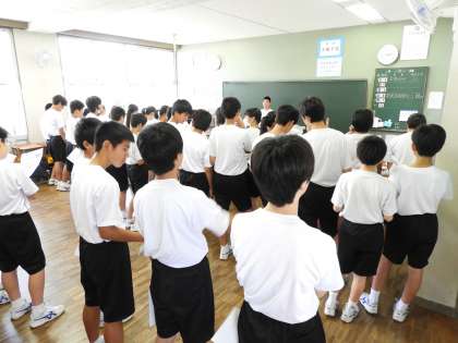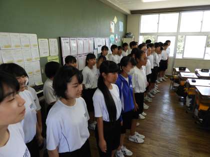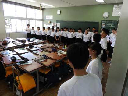 3年生を励ます会の練習が始まっています。1,2年生合同の練習会が始まり、教室から大きな声が響いてきました。