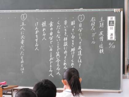 ローテーション道徳(2年)です。2年の先生方も3回目になるため、落ち着いて授業を展開されています。生徒にとっても担任外の先生方が来てくれるので、新鮮だと思います。