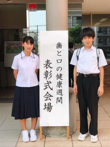 昨日、歯科保健優良校表彰があり、本校が優良校に選ばれたため、保健委員会正副委員長で授賞式に列席しました。