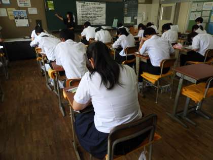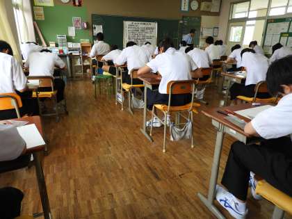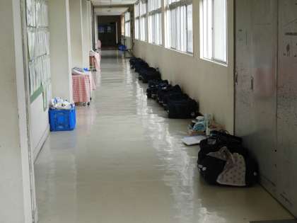第2ステージテスト(3年)です。1時間目は数学のようです。廊下の鞄がよくそろっています。