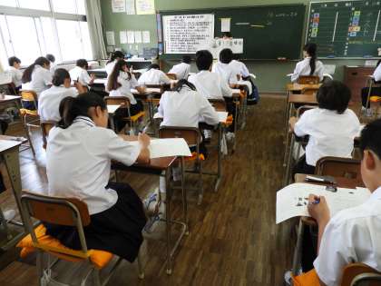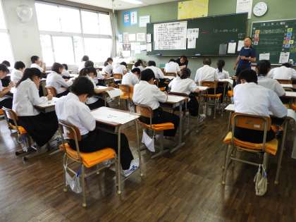 第2ステージテスト(1年)です。1年生も、学校生活に慣れ、落ち着いてテストを受けています。鞄もだんだんそろってきました。