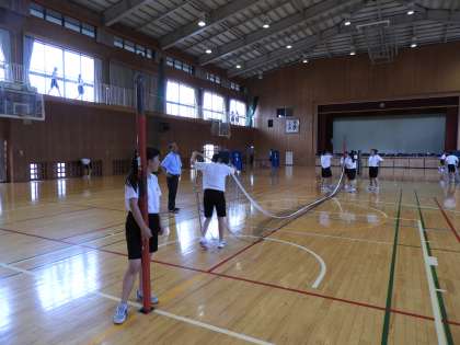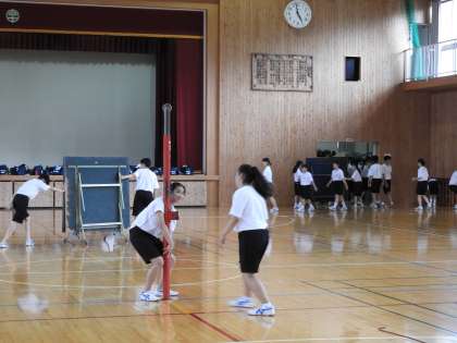 会合があって、部活動の終わりの時間になってしまいました。体育館に行くと、片付けをしているところでした。練習後ではありましたが、熱気がありました。