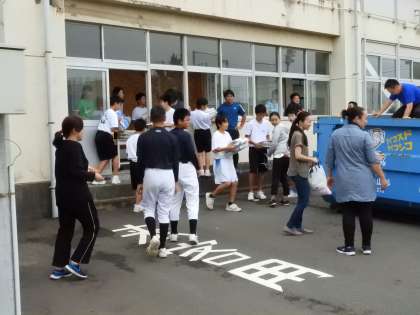 先生方も大勢来てくれました。さらに、部活動で登校してきた野球部、ソフトテニス部女子もお手伝いに参加してくれました。応援が続々と増えて、作業がはかどりました。