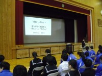 3年生も避難訓練が終わり、静かに教室へ戻っていました。