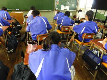 授業風景(1年C組 理科)です。1年生も、復習テストに取り組んでいるところでした。