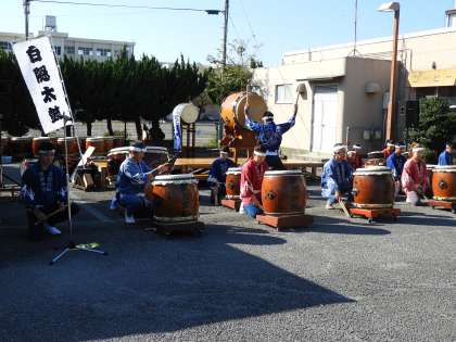 原地区コミュニティ文化祭の初日は、テレビ寺子屋が催され、菊地幸夫弁護士さんの楽しいお話が聞けました。肖像権等の問題があり、掲載致しませんが大盛況でした。2日目、文化祭の野外ステージに原中生、原中卒業生が参加していました。白隠太鼓には、3名が参加しています。頑張っています。