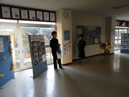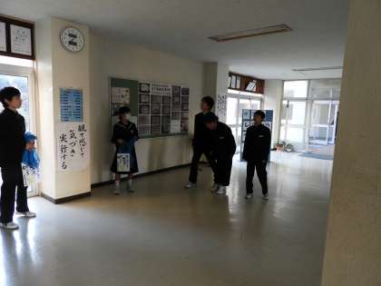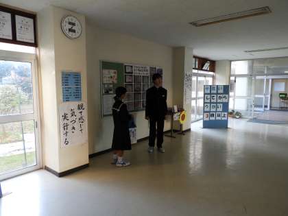 生活委員会のあいさつ運動です。1年生が生徒玄関で頑張っていました。