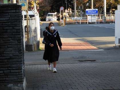 マスク姿が増えてきました。今日は朝から日が差して気持ちのいい朝です。