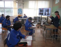 授業風景(1年D組 家庭科)です。今朝はちょっと冷え込んでいました。1Dは家庭科室にいました。ハンドモップのようなものを制作するようです。針と糸を使いこなすのも大事な勉強です。